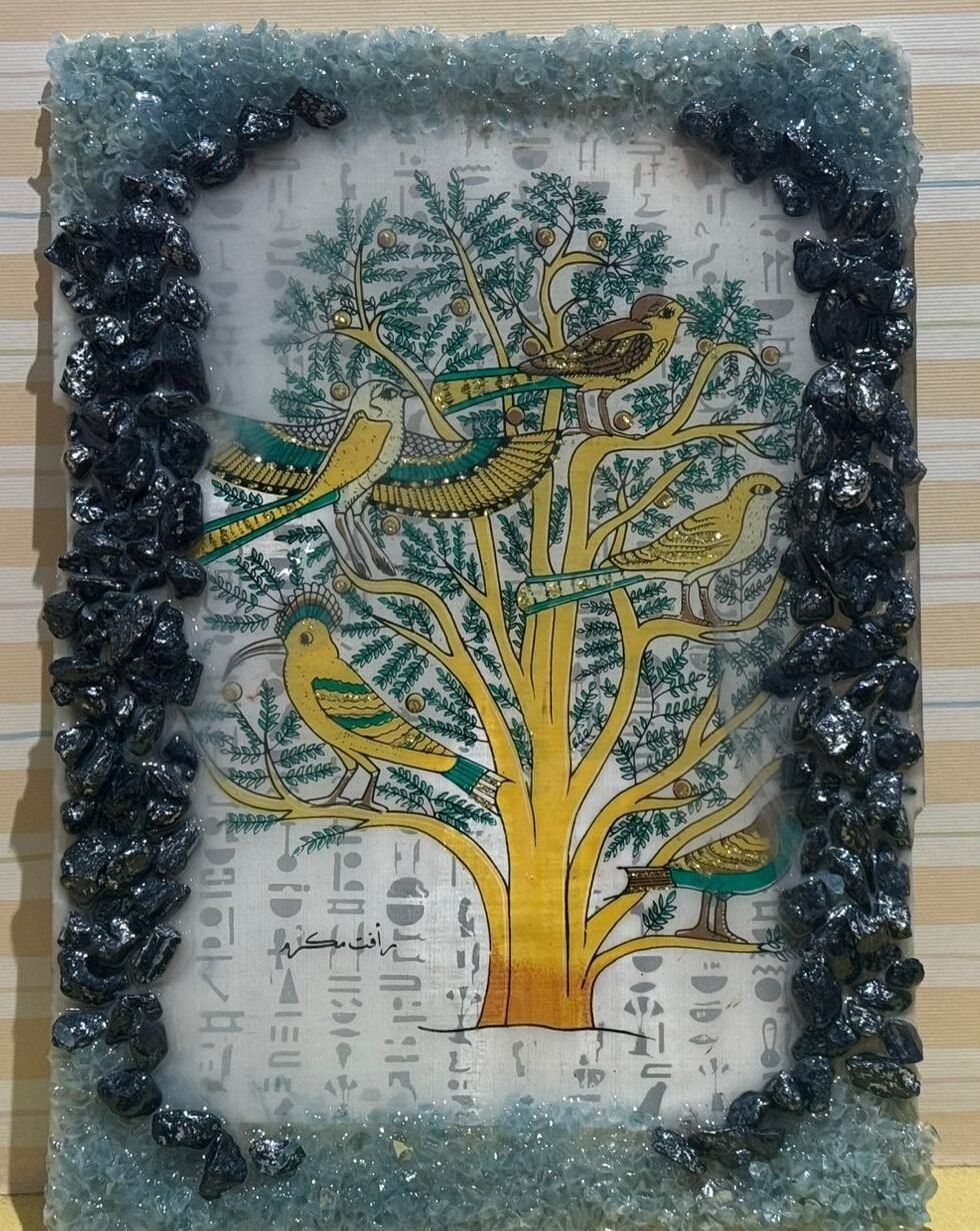 Authentic papyrus artwork paired with durable Resin material, giving a natural framed look that highlights every detail.